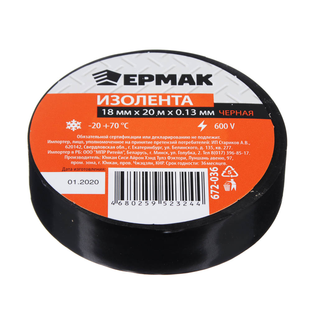 Изолента ПВХ 18/20 черная 130мкм / Ермак