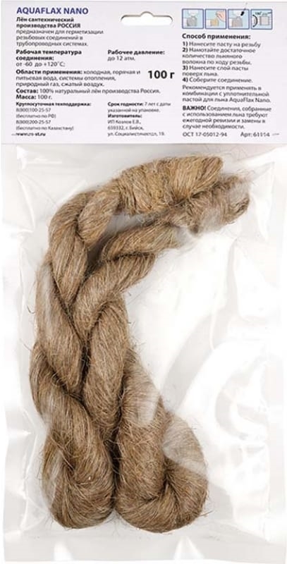 Сантехнический лён российский Aquaflax nano пакет, 100 грамм предназначен для герметизации резьбовых соединений различных систем. Применяется только совместно с уплотнительной пастой (рекомендуем использовать пасту того же бренда).