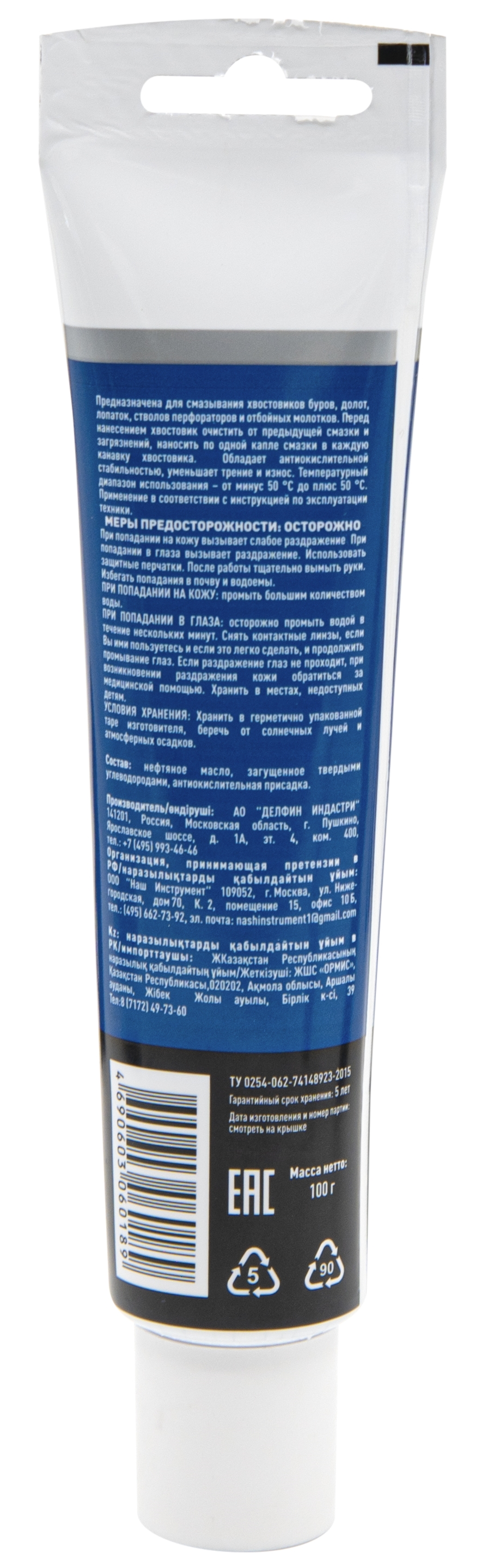 Предназначена для смазывания хвостовиков буров, долот, лопаток, стволов перфораторов и отбойных молотков. Перед нанесением хвостовик очистить от предыдущей смазки и загрязнений, наносить по одной капле смазки в каждую канавку хвостовика. Обладает антиокислительной стабильностью, уменьшает трение и износ. Температурный диапазон использования - от минус 50 °С до плюс 50 °С. Применение в соответствии с инструкцией по эксплуатации техники. Состав: нефтяное масло, загущенное твердыми углеводородами, антиокислительная присадка. Гарантийный срок хранения: 5 лет.