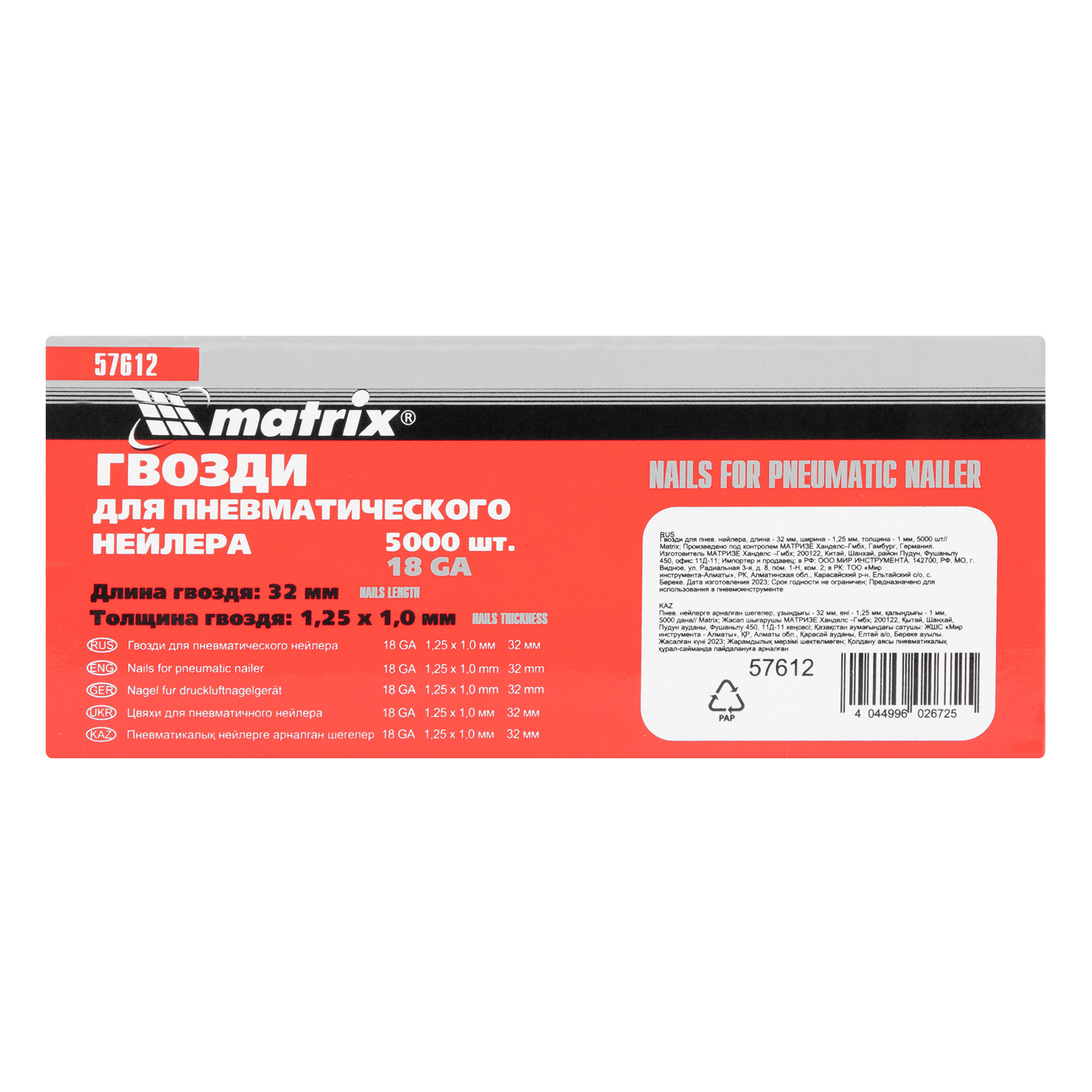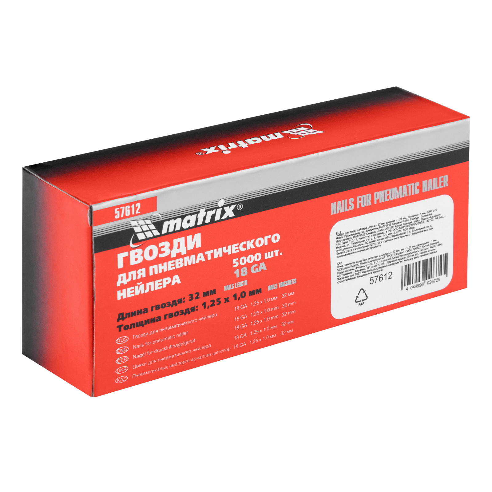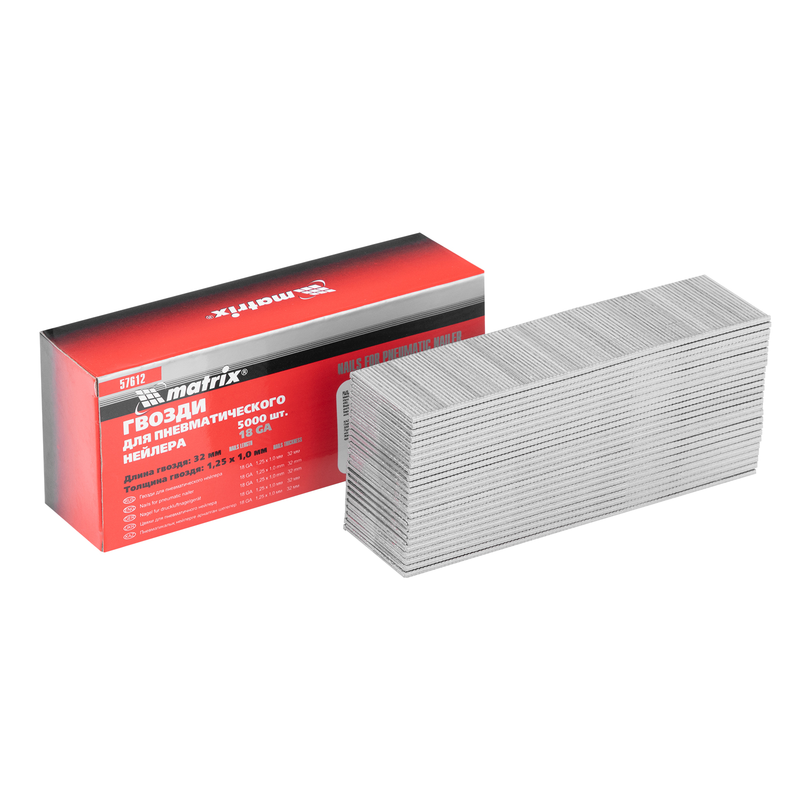 Гвозди 18GA , 5000 шт. в упаковке, предназначены для установки в магазин пневматического нейлера, работающего с крепежами шириной 1,25 и толщиной 1 мм. Они служат для обивки мебели, закрепления плинтусов, молдинга и настила, монтажа теплиц.