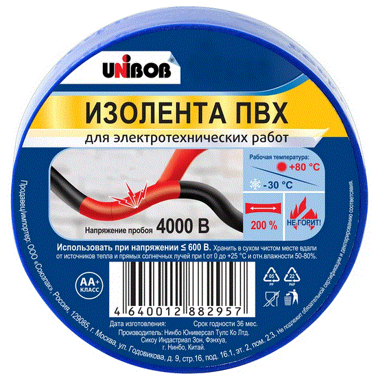 Изолента ПВХ 19/20 синяя, 150мкм / UniBob