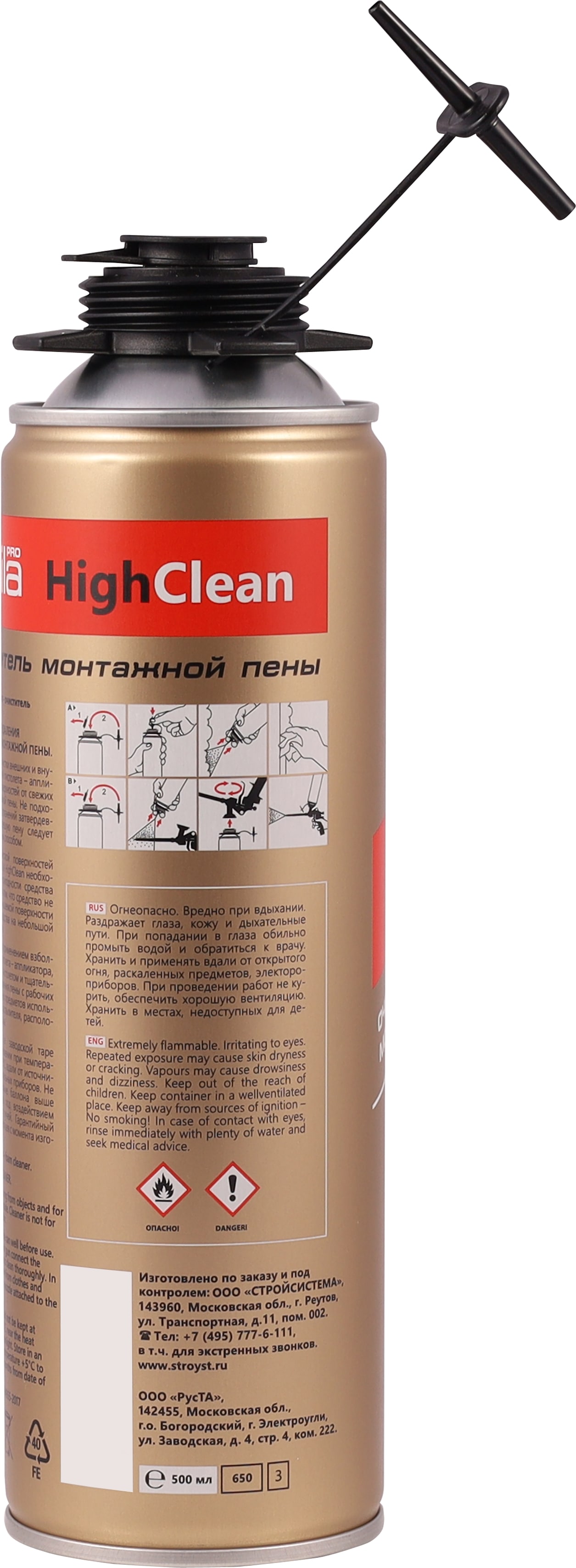 Перед применением взболтать. Для очистки пистолета – аппликатора, соединить баллон с пистолетом и тщательно промыть. Для удаления пены с рабочих поверхностей и других предметов использовать наконечник распылителя, расположенный сбоку баллона.