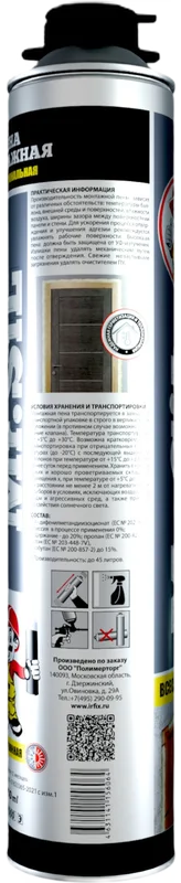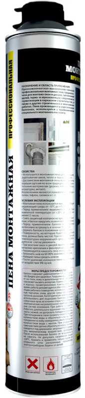 • Тип: однокомпонентная полиуретановая монтажная пена профессиональная (баллон под монтажный пистолет).