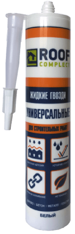 Универсальные жидкие гвозди Roof Сomplect представлены в двух видах: белый и бесцветный. После высыхания белые жидкие гвозди образуют эластичную белую пленку, а бесцветные - практически не видны на поверхности.