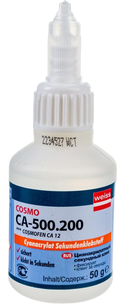 Цианоакрилатный секундный клей мгновенной фиксации. С широким спектром адгезии (лучший результат показывает с пластмассами).