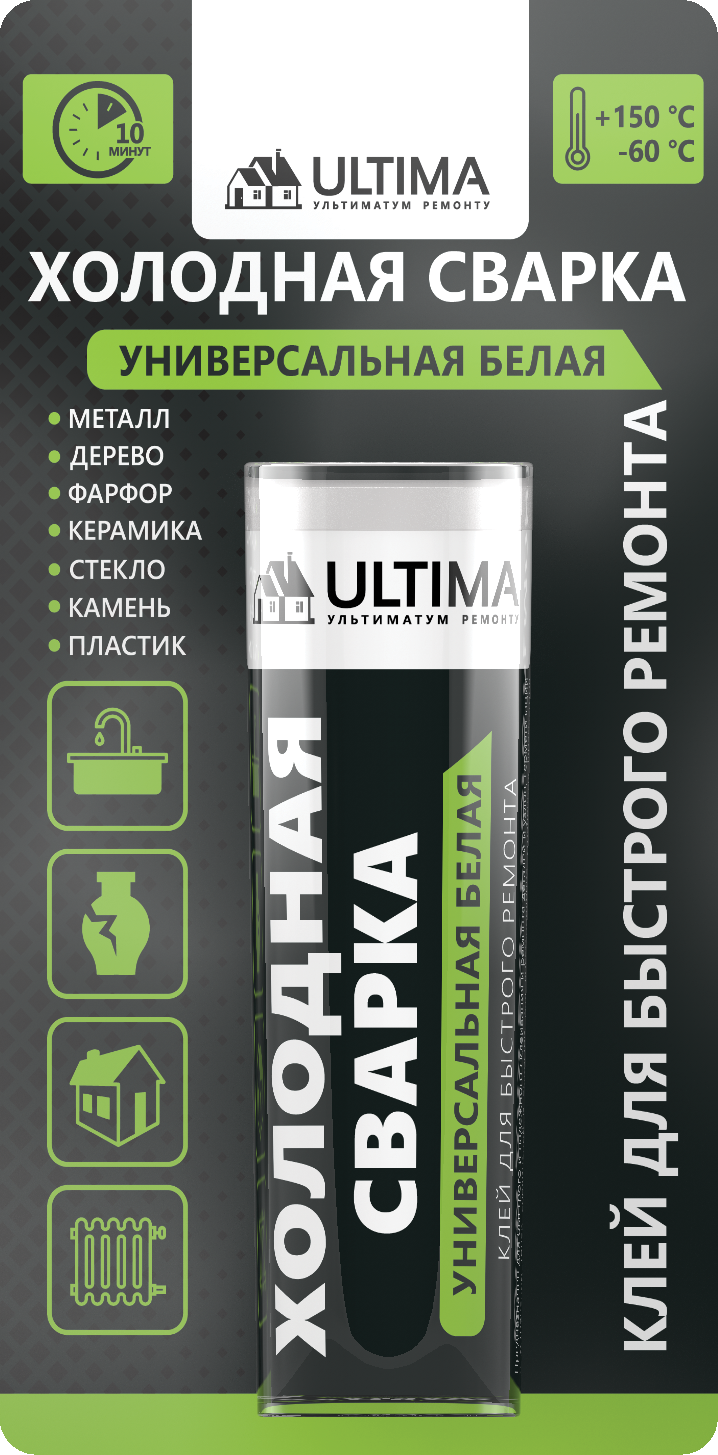 Клей холодная сварка универсальный белый, быстрого действия / ULTIMA