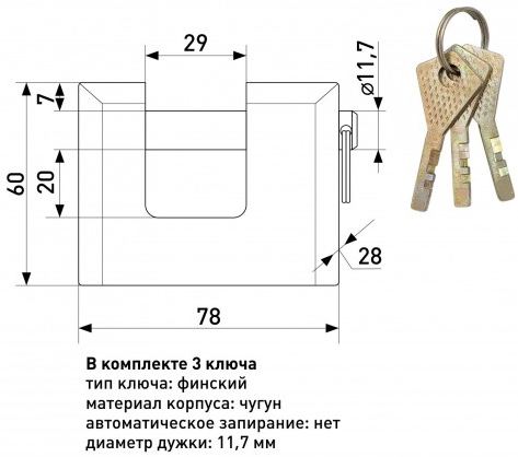 Замок навес. НВХ 80мм 3 ключа Soller
