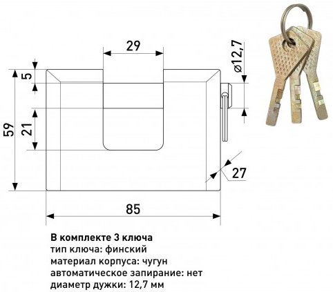 Замок навес. НВХ 90мм 3 ключа Soller