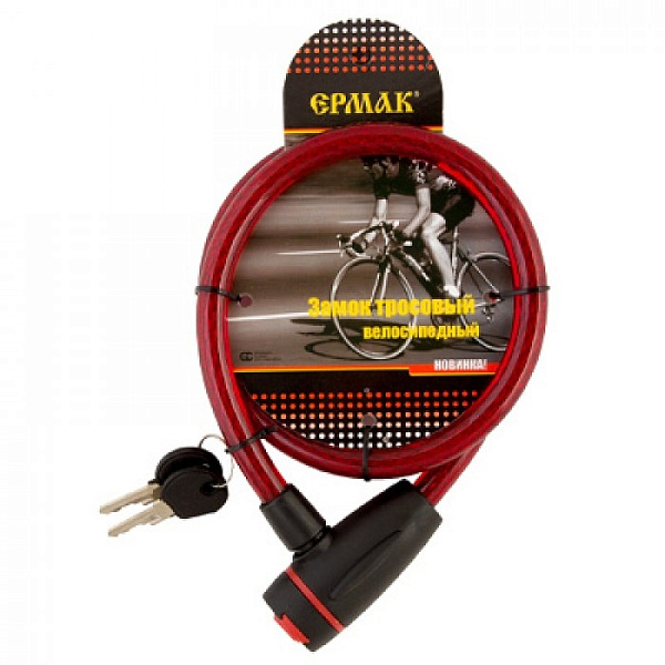 Замок велосипедный тросовый 12x800мм, металл, пластик,