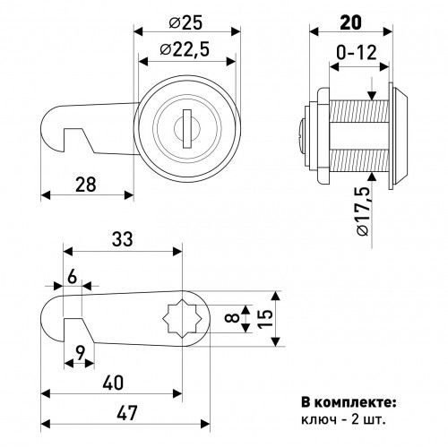 Замок почтовый устанавливается путем врезки на дверцу почтового ящика для защиты корреспонденции. Длина врезной части - 20 мм. Имеет стандартный диаметр под замочную выемку, поворотный прочный ригель с крюком на конце. В комплекте 2 ключа. Подойдет также для любых металлических шкафов, секций хранения в магазинах.