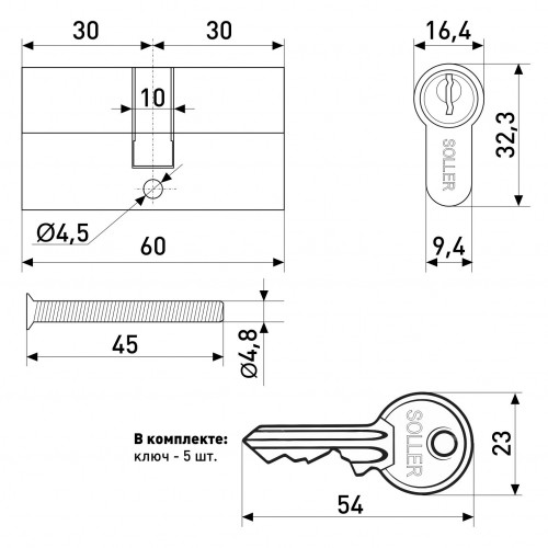 Личина 60мм ключ / ключ 5 ключей