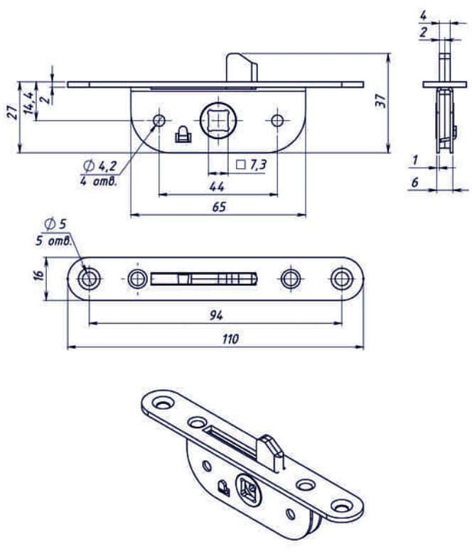 Завертка оконная ЗР2-2 с отв. планкой оц.