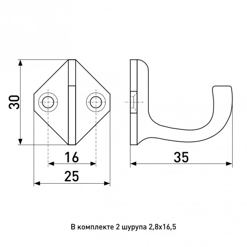 Крючок для одежды однорожковый малый, цвет покрытия - золото, хром.