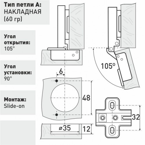 Петля мебельная А362 АА накладная