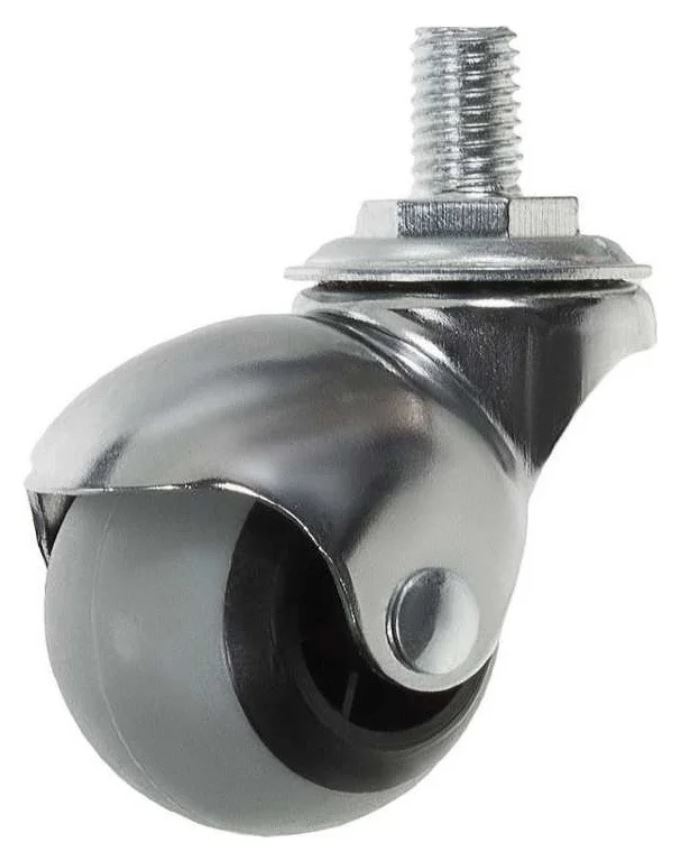 Мебельное поворотное колесо шарик с болтом М10, 50 мм, серая резина предназначено для оснащения мебели.