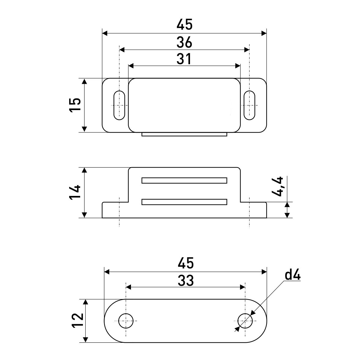 Магнит мебельный l-45 h-14 белый