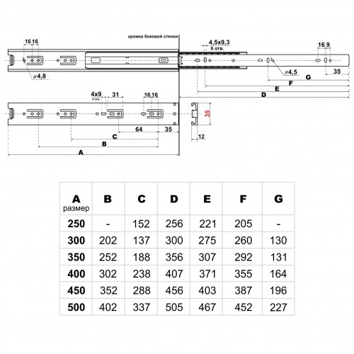 Направляющие шариковые полновыкатные 12" 35-300