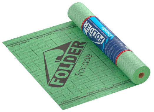 Folder Facade - это паропропускаемый материал, защищающий фасад от ветра и влаги с внешней стороны, а также предохраняющий от выдува утеплителя. Материал монтируется под наружной облицовкой в вентилируемых каркасных стенах, в деревянных, кирпичных и бетонных стенах с наружным утеплением, а также в вентилируемых фасадах.