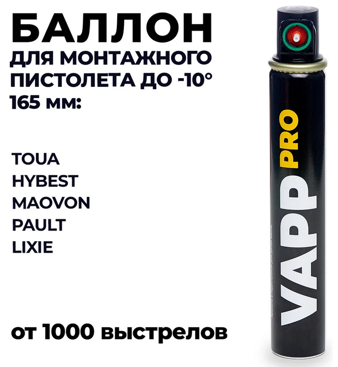 Газовый баллон для монтажных пистолетов 165мм / зеленый клапан