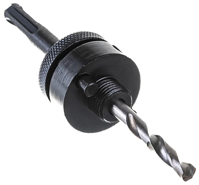 Держатель используется совместно с коронками из биметалла. Подходит для коронок, диаметр которых от 32 до 250 мм. С помощью приспособления коронка надежно фиксируется в патроне дрели. Державка обеспечивает эффективную работу, передавая максимальное усилие на режущий инструмент. Хвостовик SDS+.