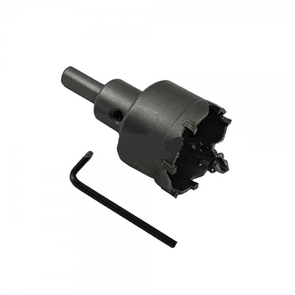 Коронка идёт цельной заготовкой с хвостовиком. Сменное центрирующее сверло и шестигранный ключ в комплекте. Обладает большим рабочим ресурсом. Применяется в безударном режиме. Материал изготовления - инструментальная сталь, зубья из победита.
