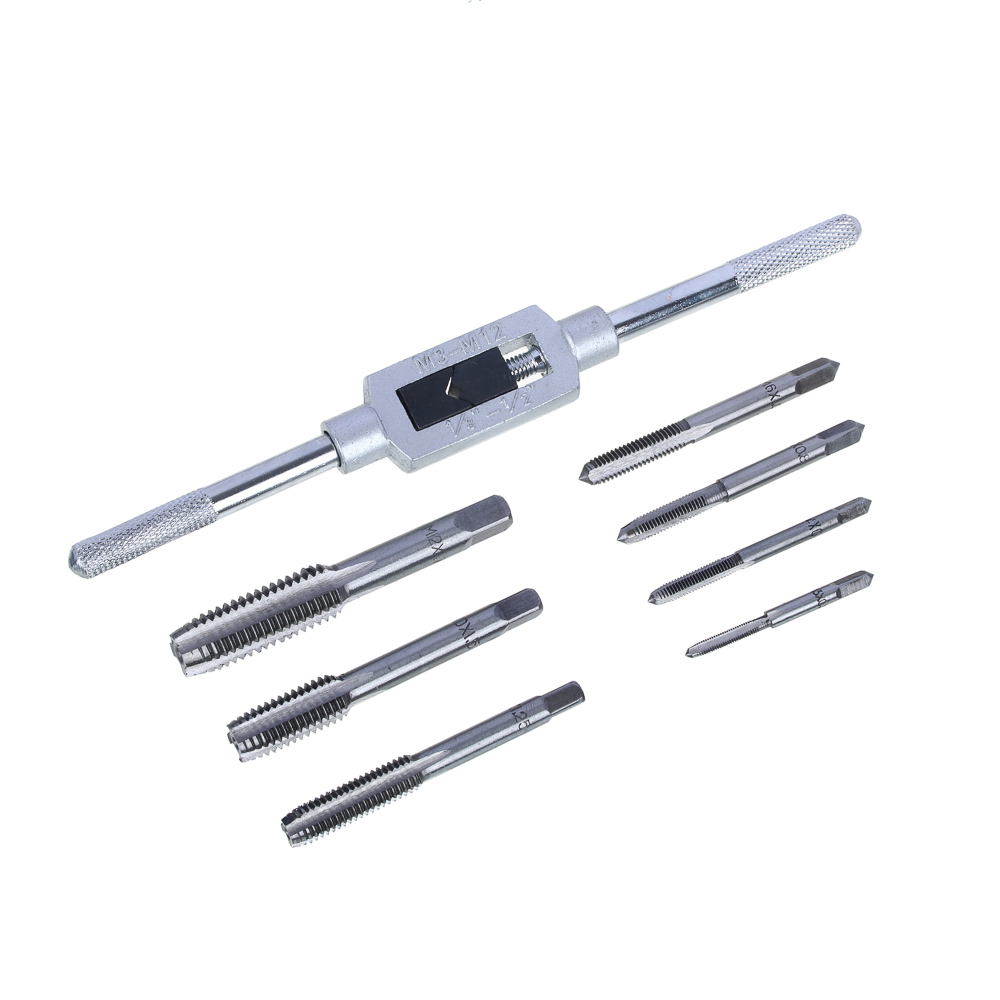 Набор метчиков М3-М12 из 8 предметов позволяет нарезать наружную и внутреннюю резьбу на металлических деталях. Также он применяется для восстановления сорванной резьбы. Набор предназначен для ремонтных работ, используется в профессиональной и бытовой сфере.