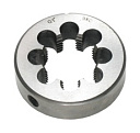 Наибольшее применение получила круглая плашка, с помощью которой можно нарезать резьбу не более второго класса точности, применяется для нарезания метрических, трубных и дюймовых резьб с крупным, обычным или мелким шагом. При ручной работе данный тип инструмента фиксируется в воротке стопорными винтами.