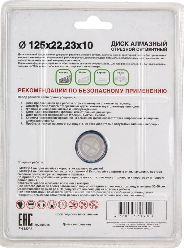 Диск алмазный сегментный 125 х 22.23 х 10 по бетону TSUNAMI