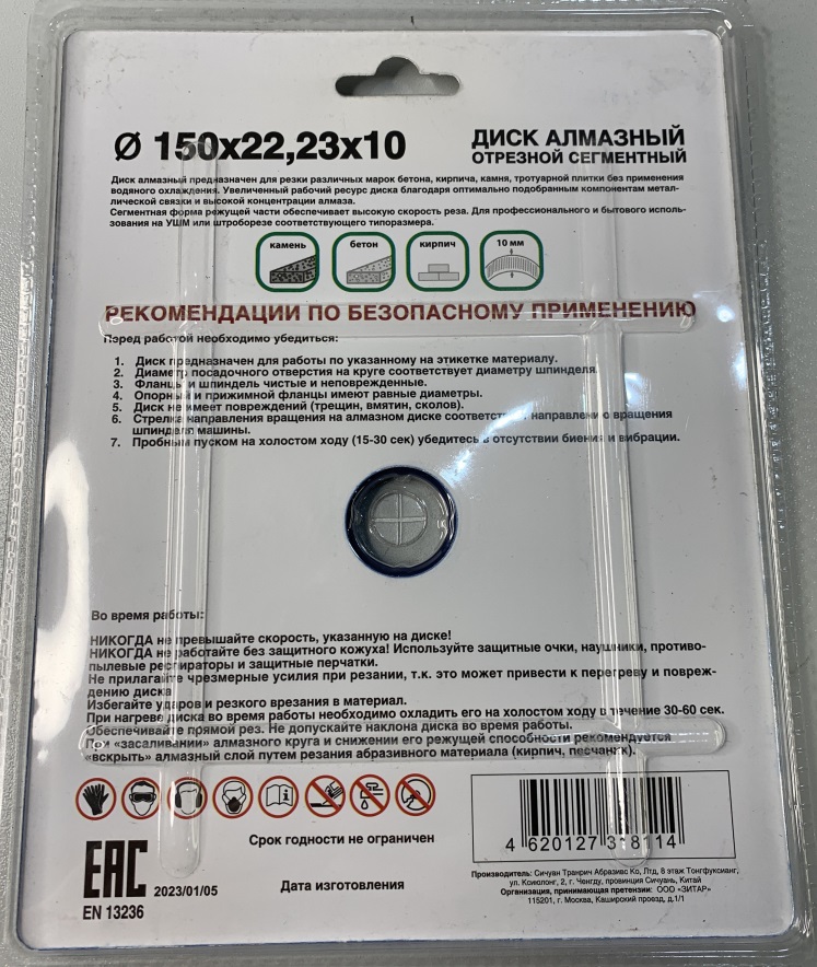 Диск алмазный сегментный 150 х 22.23 х 10 по бетону TSUNAMI
