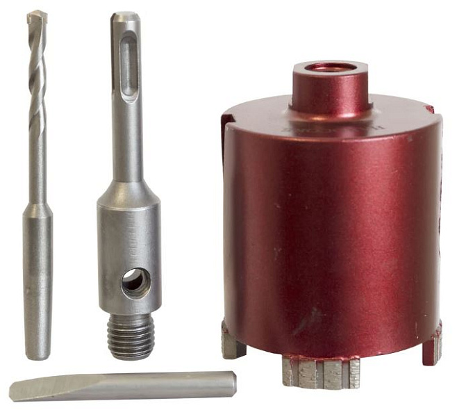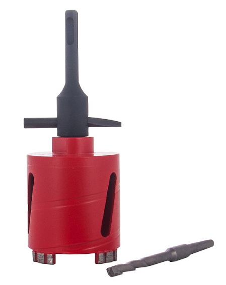 Особенности: удлинители для алмазных коронок позволяют высверливать отверстия глубиной до 600 мм с помощью перфоратора в безударном режиме сверления.