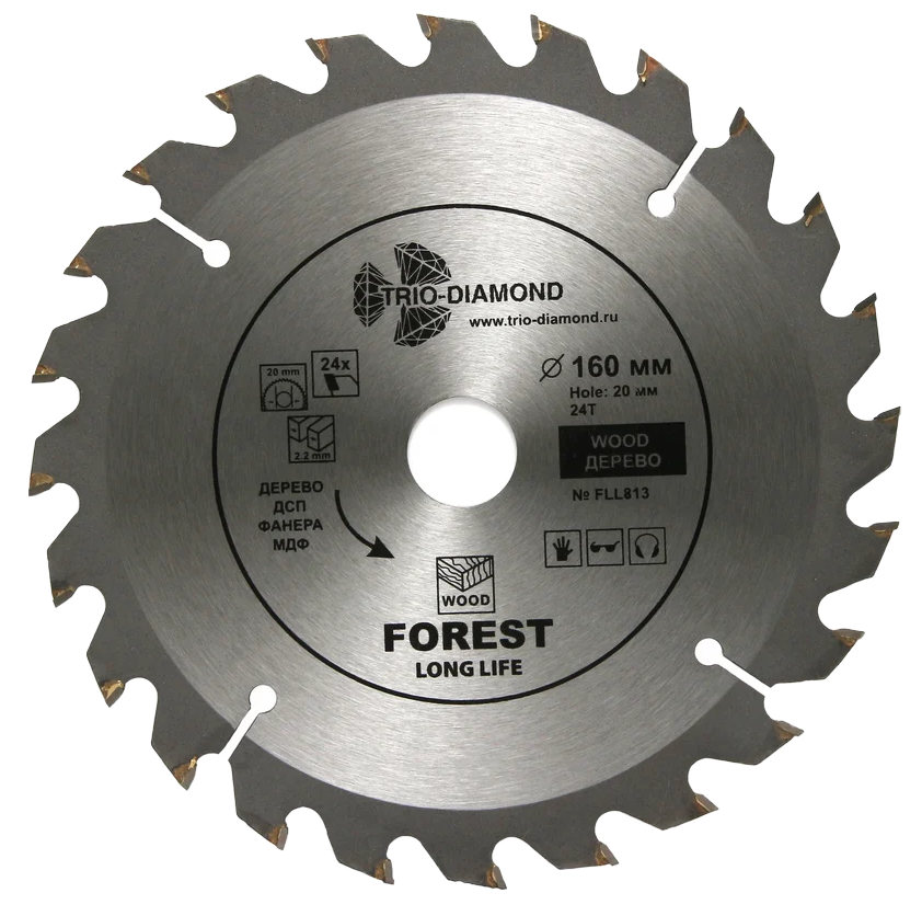Диск пильный 160х24Тх20/16мм по дереву, ДСП, фанере