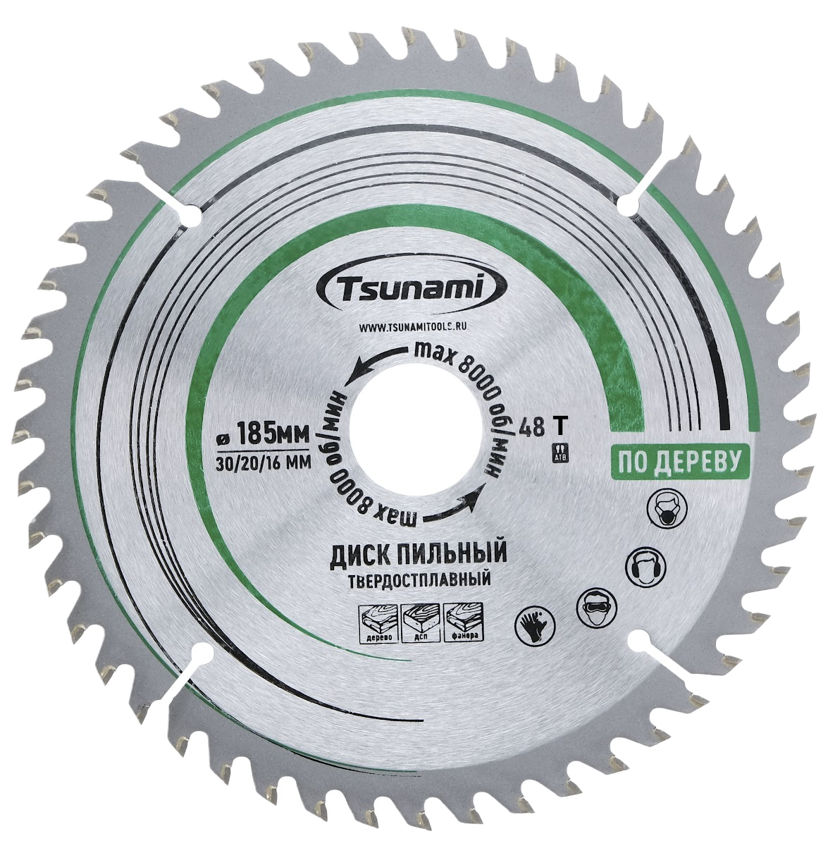 Диск пильный 185х48Тх30/20/16мм по дереву, ДСП, фанере / TSUNAMI