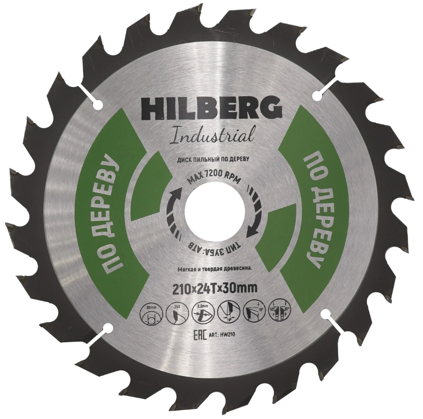 Диск пильный 210х24Tх30мм серия Hilberg Industrial Дерево