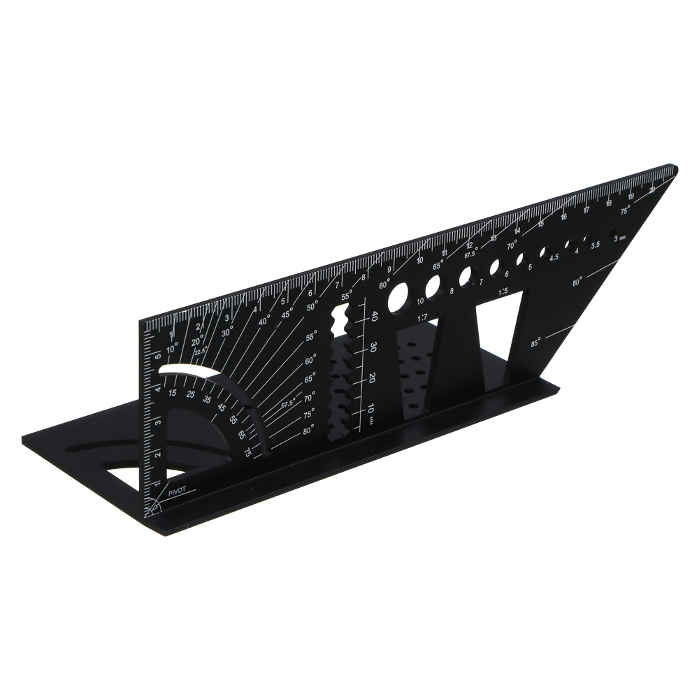 Угольник многофункциональный разметочный 215x74x63мм, алюминий, цвет черный – уникальный инструмент, объединяющий в себе семь функций для точной и удобной разметки. С его помощью вы сможете выполнять разметку под углом 40 градусов и 90 градусов, использовать его как рейсмус, транспортир, инструмент для линейной разметки, разметки труб и определения размера сверла. Один инструмент заменяет сразу семь, что значительно экономит время и упрощает работу. Благодаря качественным материалам и продуманной конструкции, угольник обеспечивает высокую точность измерений и разметки. Алюминиевый корпус гарантирует долгий срок службы даже при интенсивном использовании.