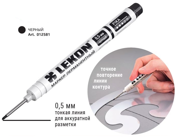 Маркер перманентный 0,5мм удлиненный наконечник черный / LEKON Pika