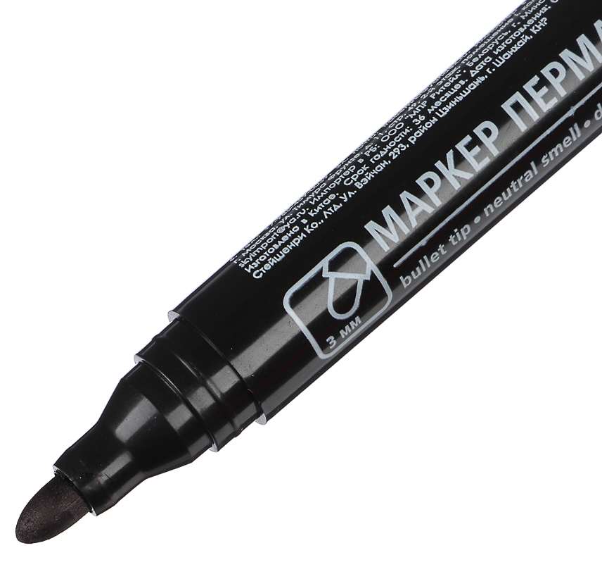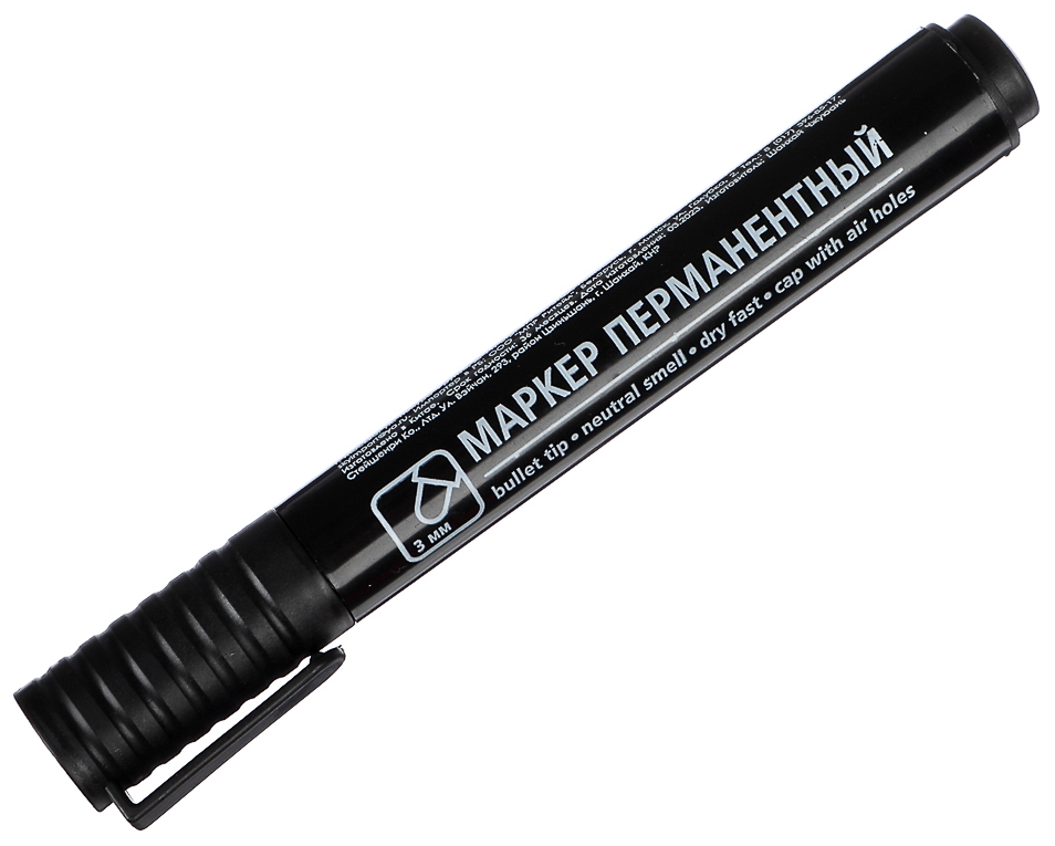 Черный перманентный маркер с пулевидным наконечником подходит для нанесения постоянных надписей на любых поверхностях: бумаге, пластике, металле и камне. Водостойкий, быстро высыхает после нанесения, не размазывается, пишет ярко. Толщина линии – 3 мм. Незаменим для строительства, ремонта, создания чертежей. Оснащен плотным вентилируемым колпачком, не засыхает и не имеет запаха.