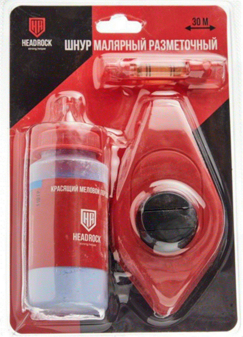 Разметочный шнур + порошок применяются при строительных и отделочных работах. В конструкции предусмотрена откидная рукоятка - для быстрого сматывания шнура. Длина разметочного шнура - 30 м. На корпусе расположено отверстие со сдвижной крышкой - для заполнения мелом. Крючок для закрепления шнура изготовлен из нержавеющей стали. В комплекте входит мел - краска синего цвета и пузырьковый уровень для горизонталей.