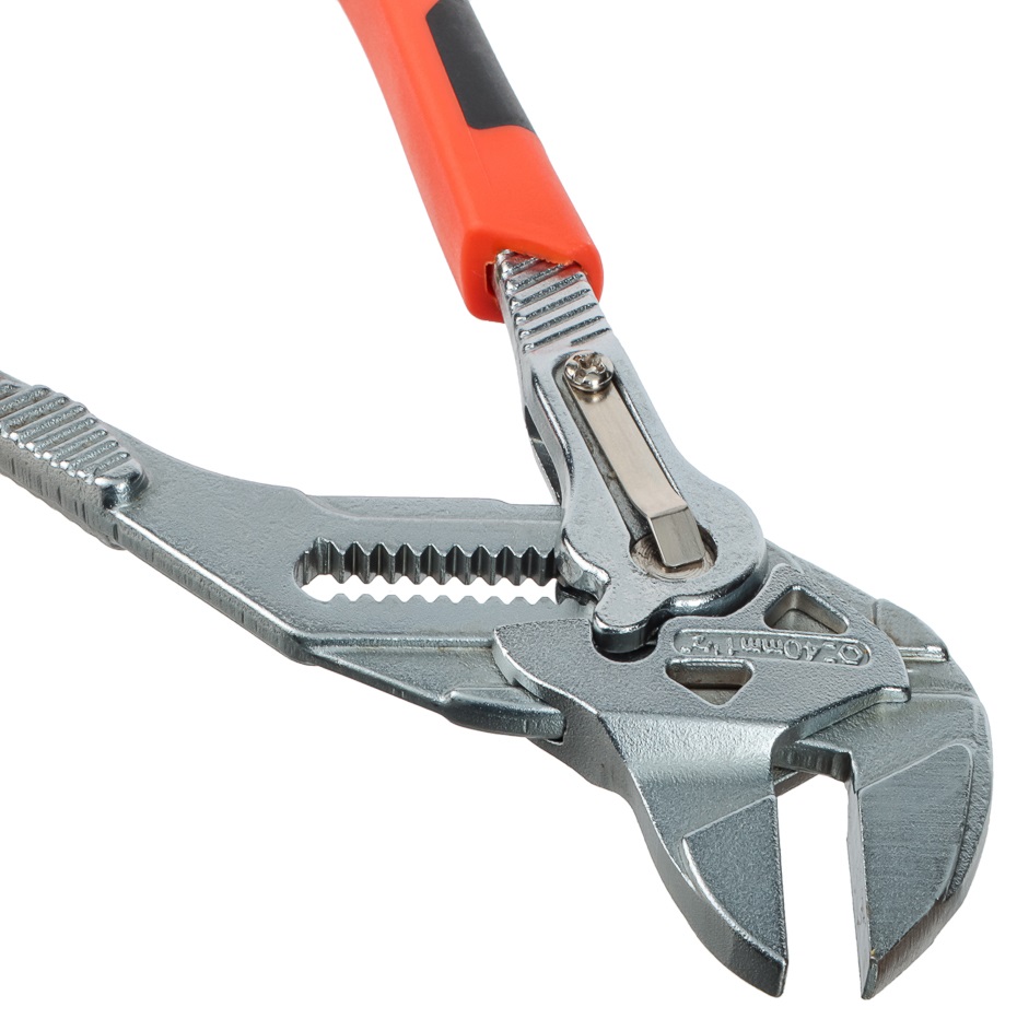 Переставные клещи-гаечный ключ предназначены для монтажа и демонтажа резьбовых соединений различных размеров. Благодаря регулируемому захвату, они могут заменить собой несколько гаечных ключей. Длина клещей составляет 180 мм, что обеспечивает удобство использования в различных ситуациях. Изготовлены из высококачественной стали для обеспечения прочности и долговечности инструмента.