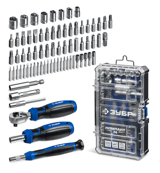 Универсальный набор инструмента 74 предм., система стыковки Z-БОКС ЗУБР Компакт Профессионал (25283)