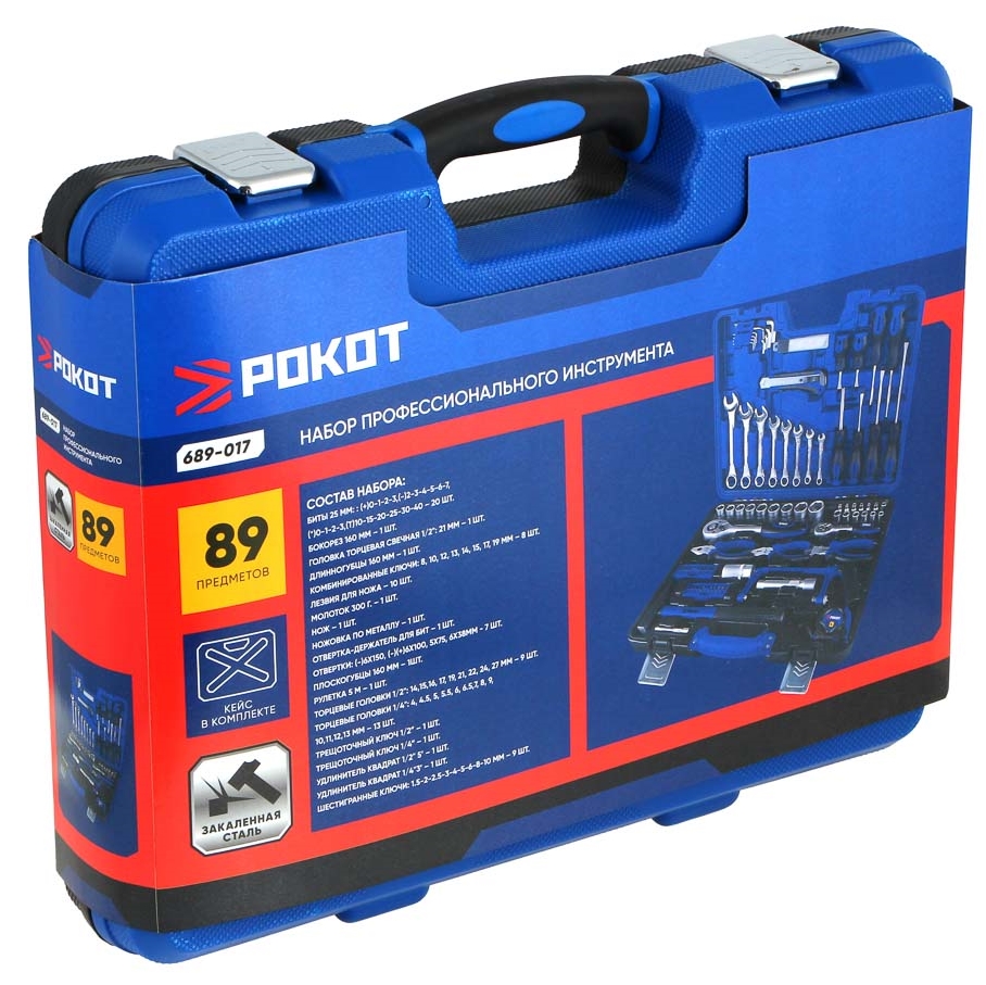 Набор профессионального инструмента в кейсе включает 89 предметов и предназначен для монтажа и демонтажа резьбовых соединений. В комплекте имеются разные типы отверток с держателями для бит, трещоточный ключ, адаптеры для бит, головки и биты разных размеров. Все металлические элементы выполнены из высококачественной хромванадиевой стали, устойчивой к износу и коррозии. Набор может стать отличным подарком для мастера.