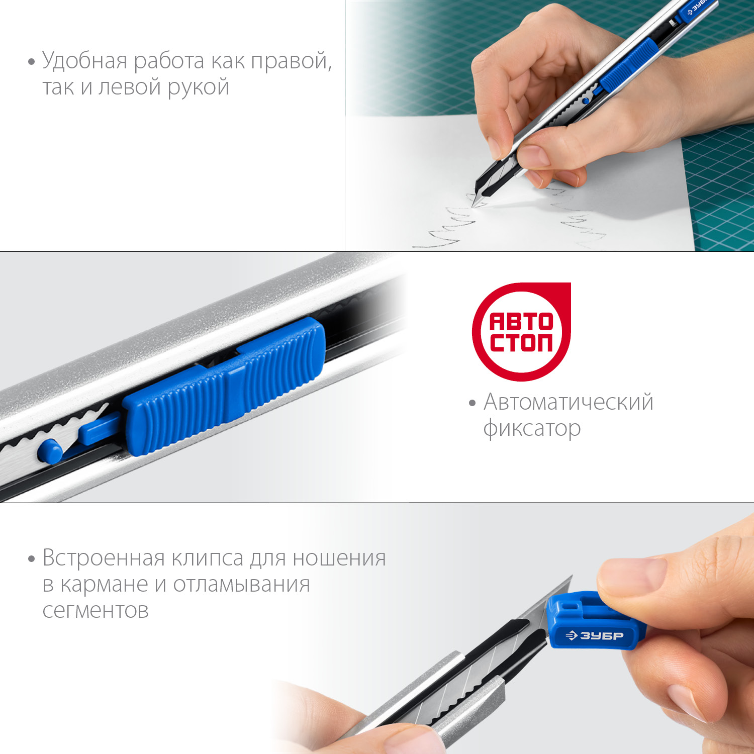Нож 9мм металлический с автостопом / ЗУБР ПРО-9А
