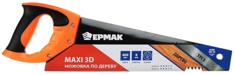 Ножовка по дереву 400мм 3 TPI 3D заточка ЕРМАК