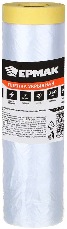 Пленка укрывная с малярной лентой 3,5 х 20м, 7 мкм Ермак
