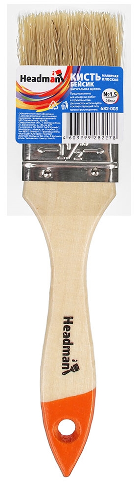 Кисть плоская 1,5" (38мм) Basic нат. щетина
