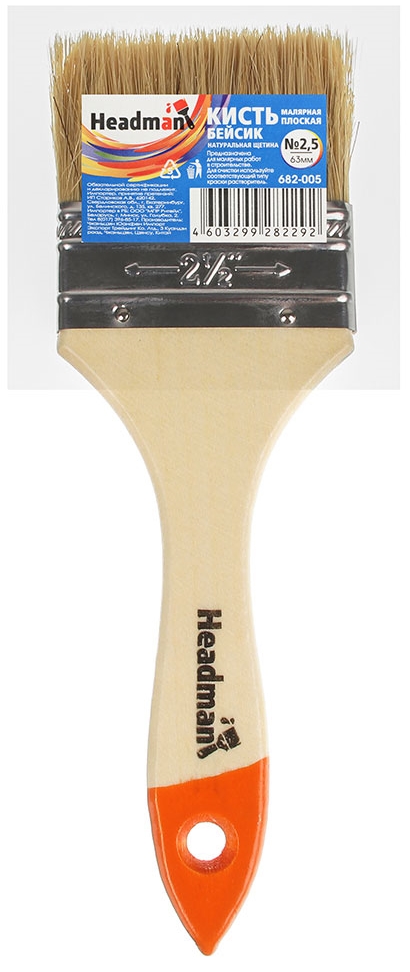 Кисть плоская 2,5" (63мм) Basic нат. щетина