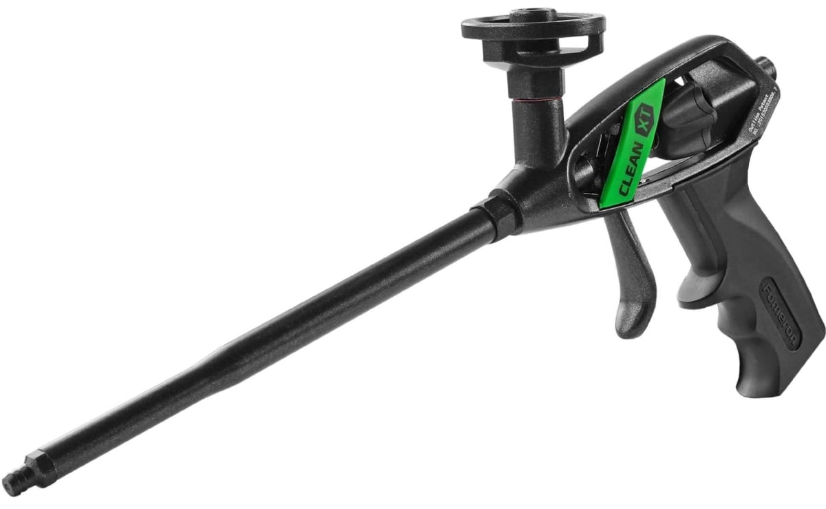 Двухслойное тефлоновое покрытие препятствует прилипанию пены на металлический корпус пистолета. Благодаря эргономичной двухкомпонентной рукоятке работа с инструментом более удобная.