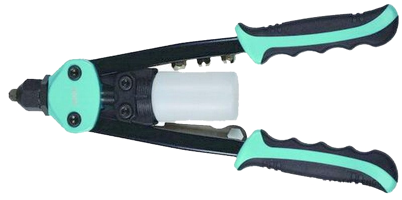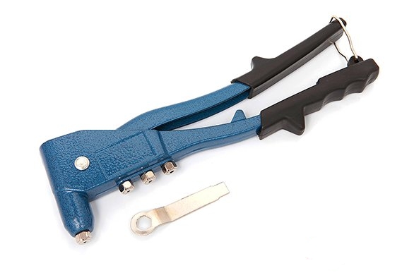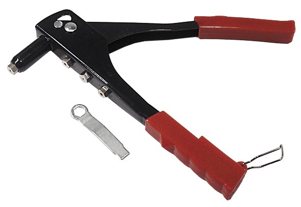 Используется при скреплении поверхностей алюминиевыми заклепками. Металлический, имеет силовой рычажный механизм. Рукоятки обрезинены.