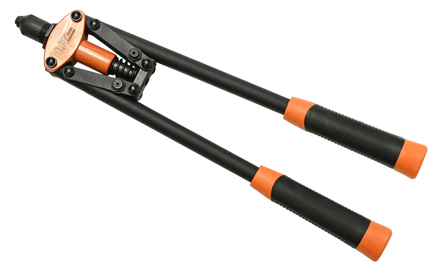 Усиленный двуручный заклепочник выдерживает большие нагрузки и предназначен для установки заклепок из любых видов материалов при профессиональных и индустриальных работах.