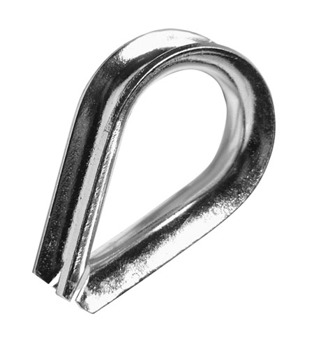 Коуш применяется для установки на трос при изготовлении петли. Делает петлю более плавной, предохраняя трос от перетирания. Коуш может быть установлен на стальные, растительные и синтетические канаты. Размер коуша определяется по диаметру применяемого троса.