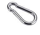 Карабин быстро действующее соединительное звено между двумя цепями, тросами, веревками, имеющими петли. Карабин имеет грушевидную форму, оснащен пружинной защёлкой для быстрого соединения или разъема. Применяется для быстрого и надёжного крепления тросов, канатов, цепей. Размер определяется по диаметру поперечного сечения проволоки. Не использовать для подъёма и особо ответственных работ.